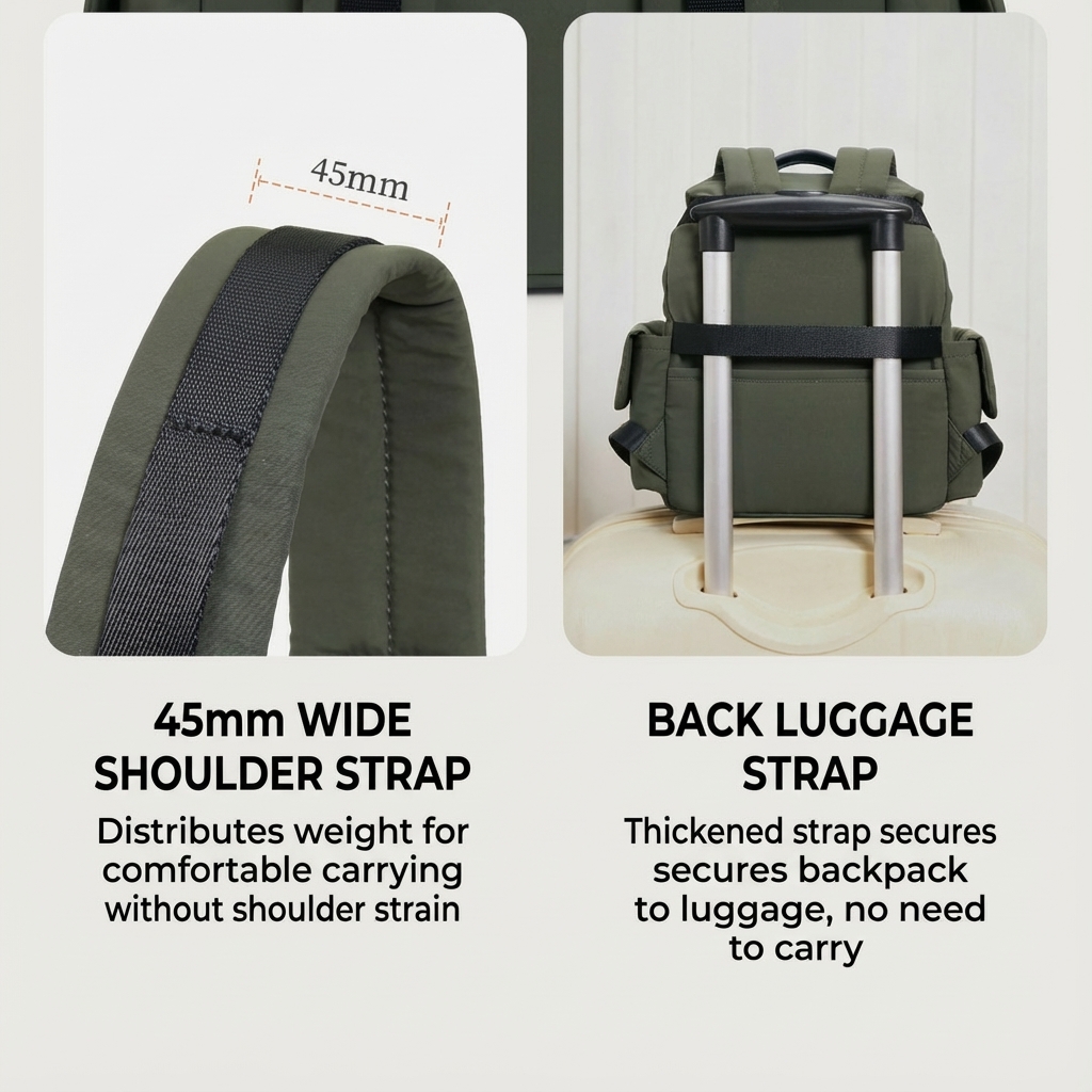 【Pressure Reducing Backpacking】45mm widened shoulder straps + luggage rack fixation straps, making travel and commuting more comfortable