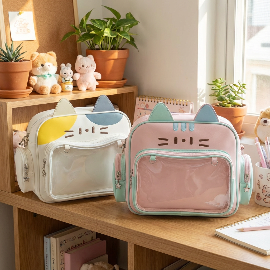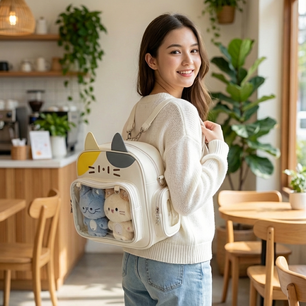 This cute kitty backpack truly hits the spot for girls! With its three-dimensional cat ears and cartoon cat face design, it has an extremely adorable appearance that catches everyone’s attention. When carried, it becomes a walking source of cuteness. The transparent window on the front can not only display the doll and its accessories, but also help quickly find things; the multi-zone storage allows you to categorically place your phone and cosmetics, eliminating the mess. The shoulder strap is adjustable, allowing you to switch between single shoulder, cross-body, and double shoulder styles, making it suitable for commuting, shopping, and other scenarios. There are also two options available: cream-colored contrast and pink-green freshness. It can easily match any outfit. It is not only a practical backpack but also a “mobile display cabinet” for showcasing your beloved items. It combines cuteness and practicality perfectly!