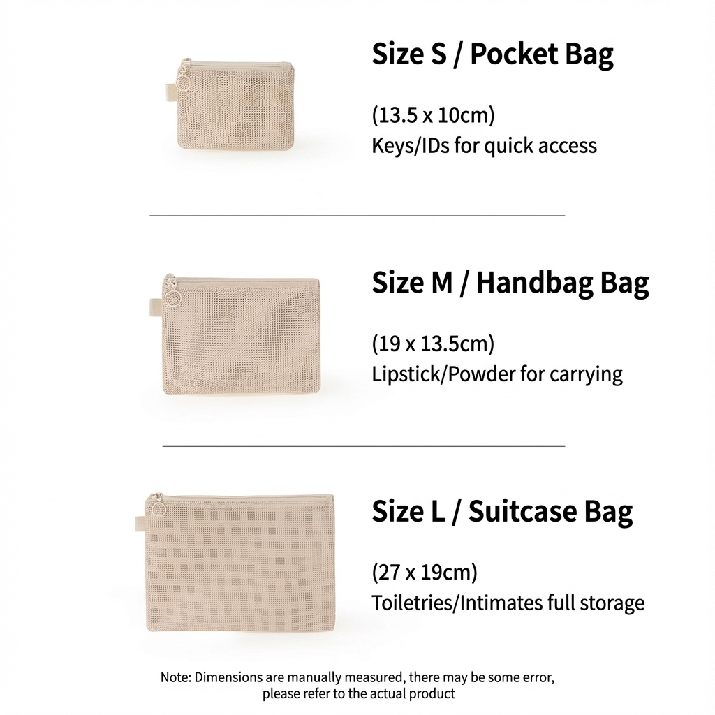 【Three Sizes Available】S/M/L full range of sizes. Covers keys, cosmetics, and toiletries.