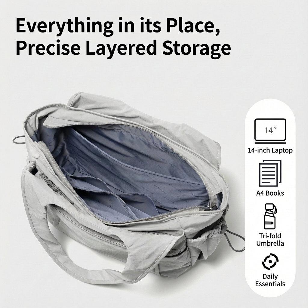 【Lightweight Without Burden】Self-weight is only 0.4kg. It is lightweight and does not press on your shoulders, making daily carrying stress-free.