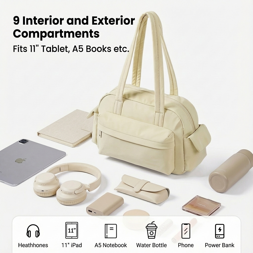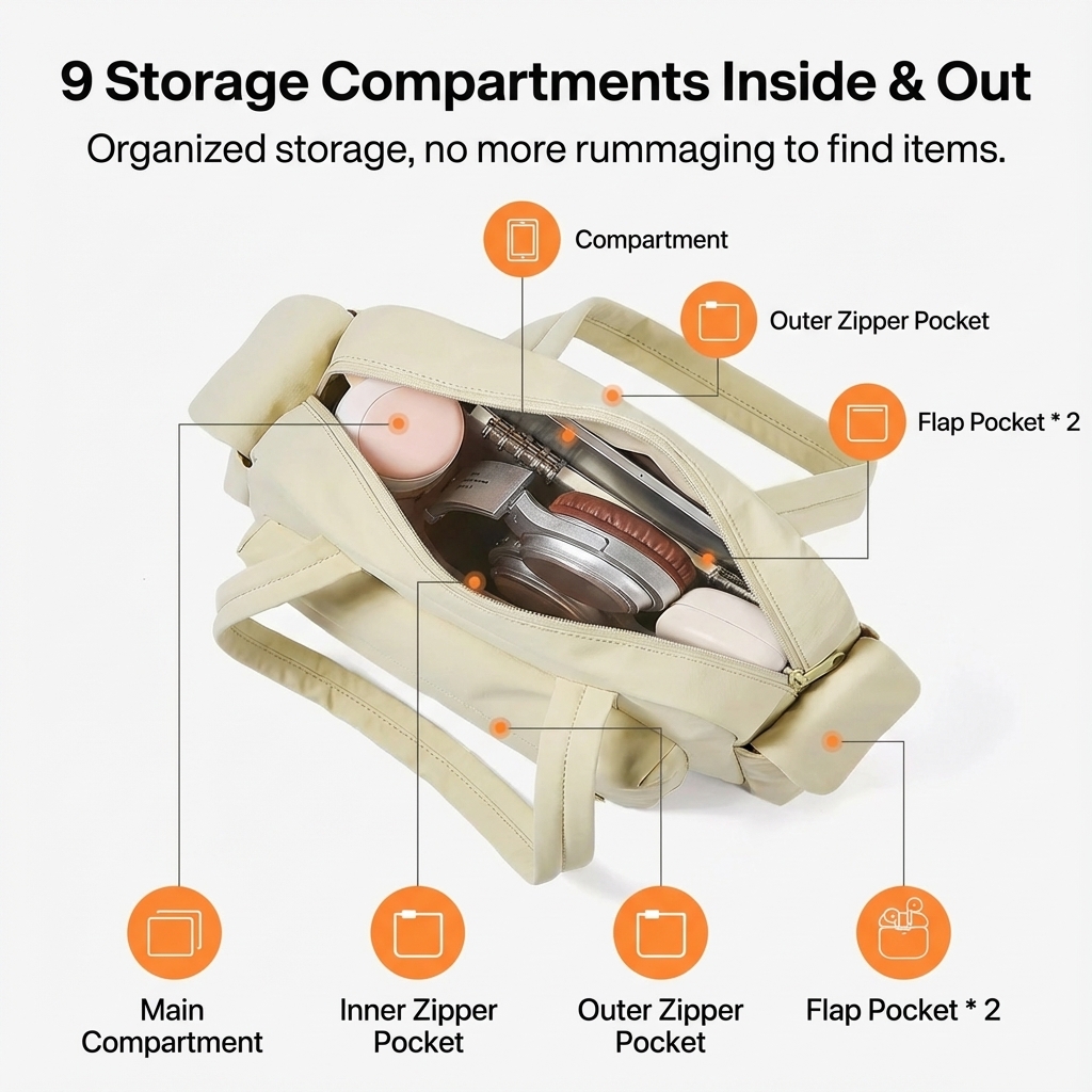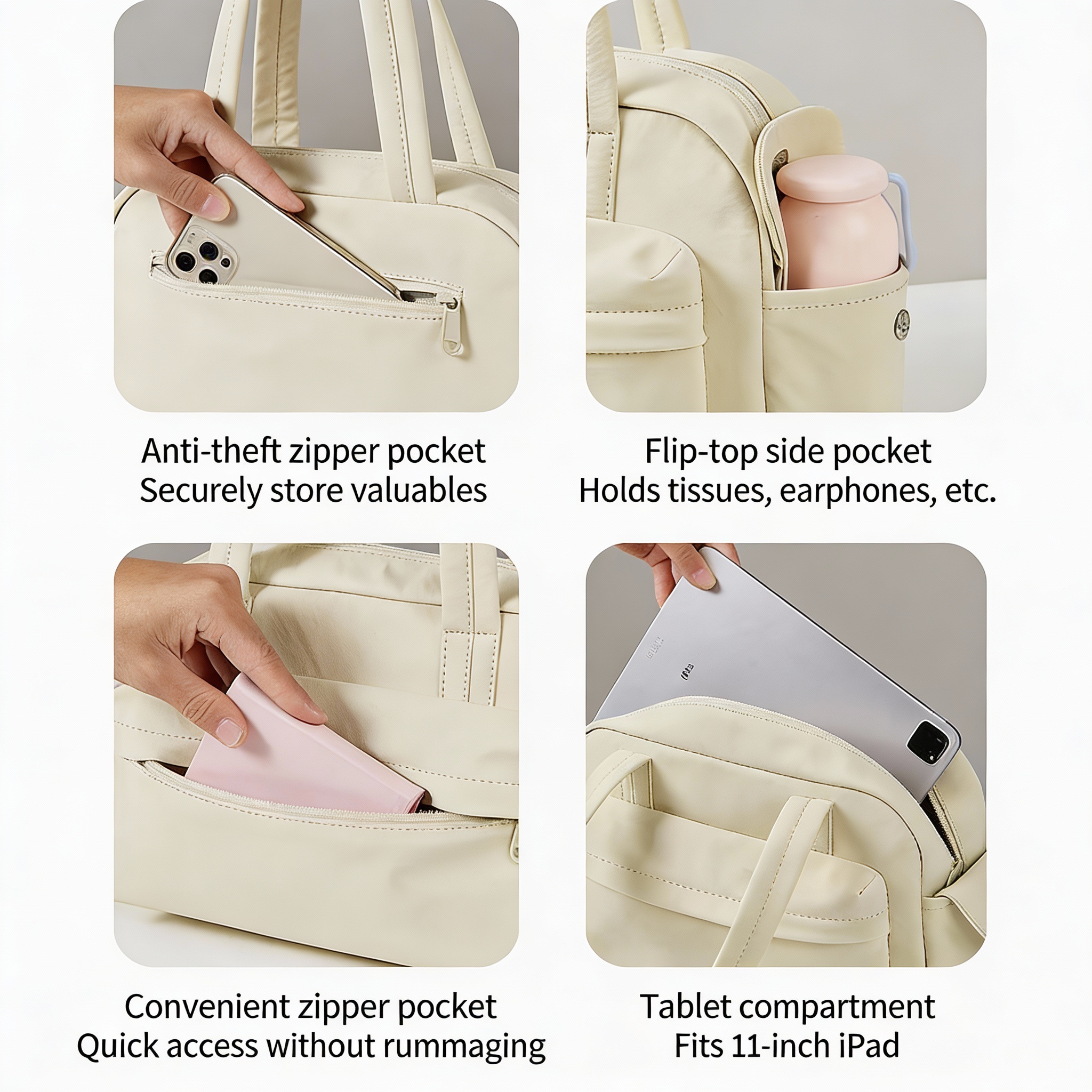 【9-level Fine Storage】9 compartments inside and outside + anti-theft bag, can hold a 11-inch tablet, organized without disorder