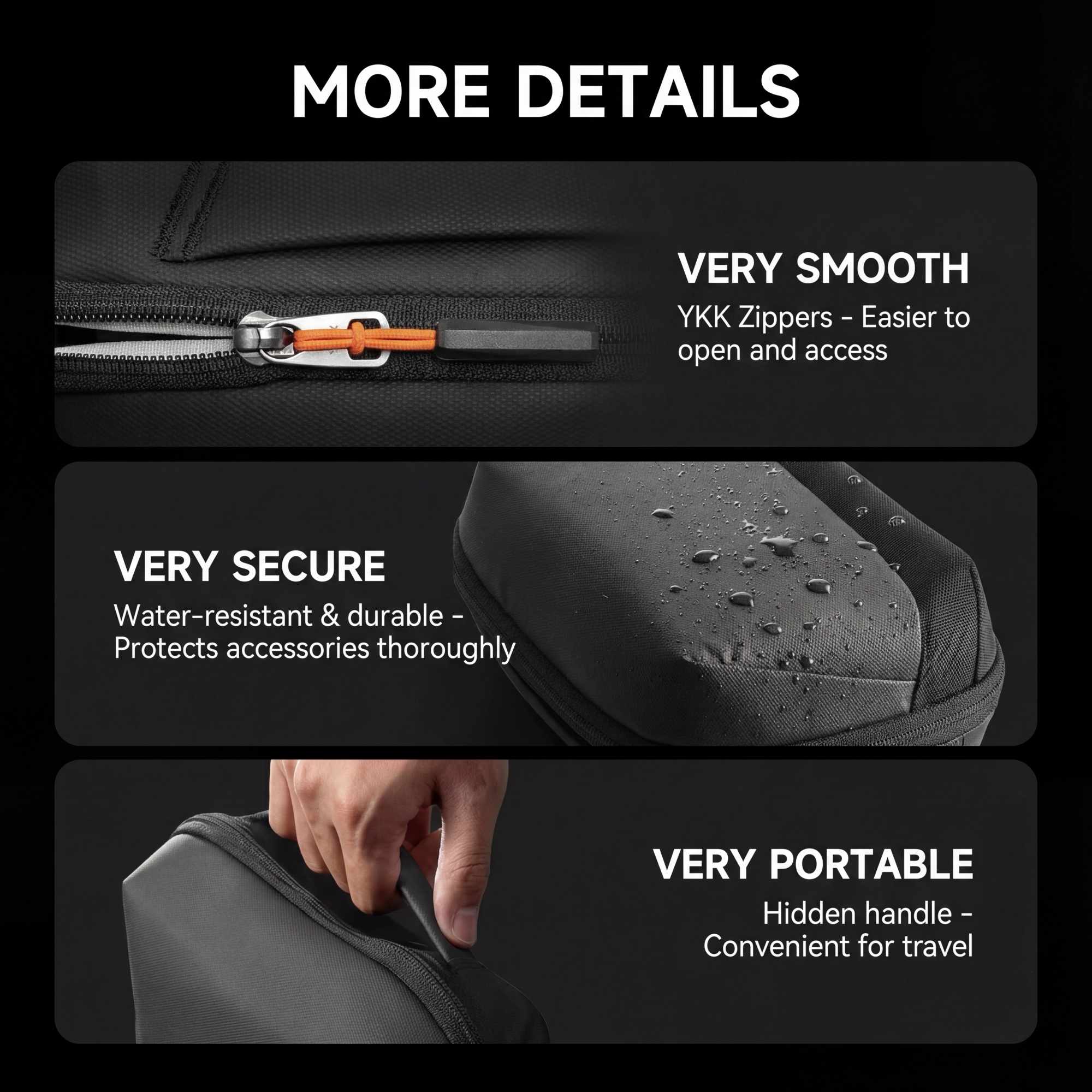 【Enhanced Detail】YKK zipper is smooth, hidden handles for portability.