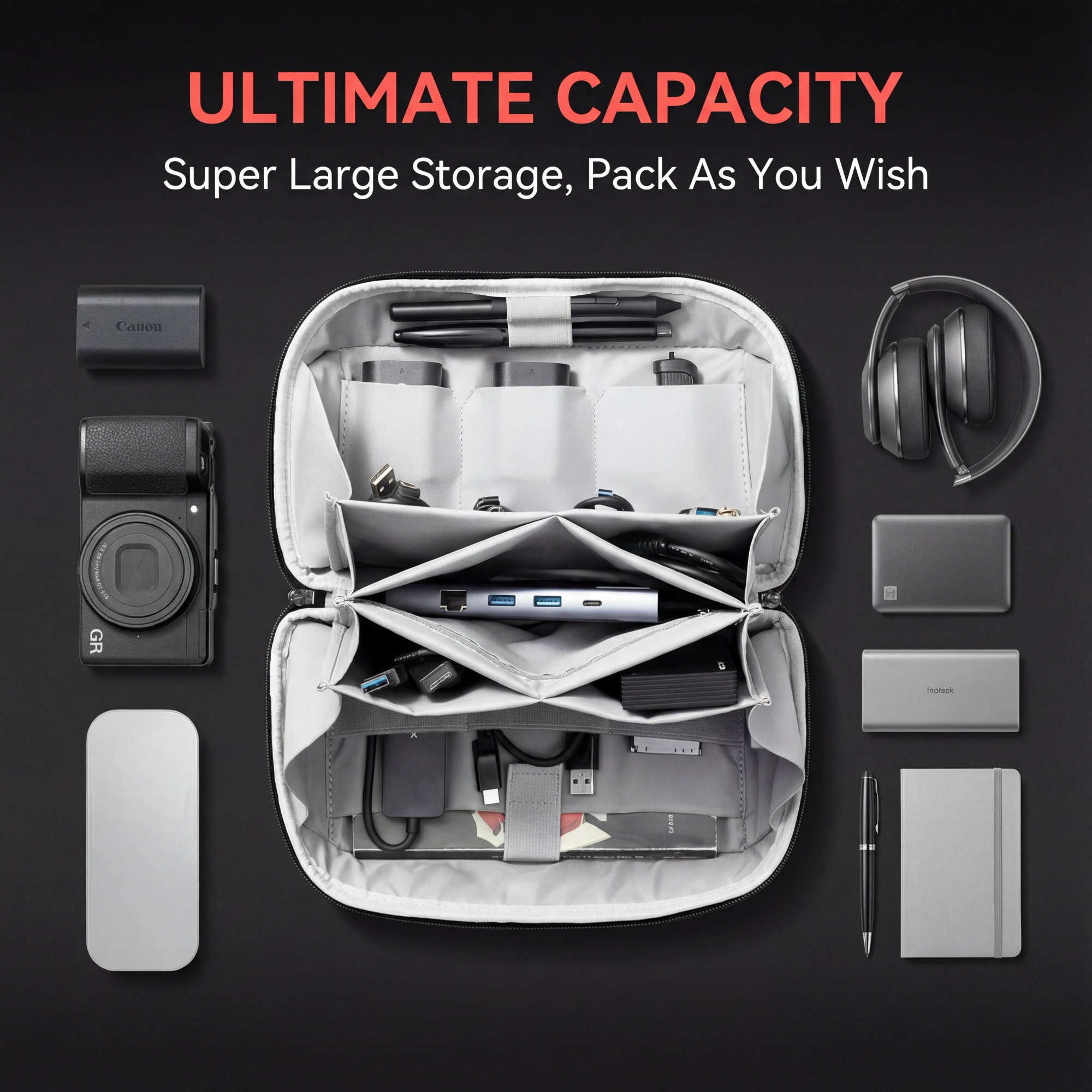 【Expandable Capacity】Extra large space suitable for cameras / headphones, no stress during travel.