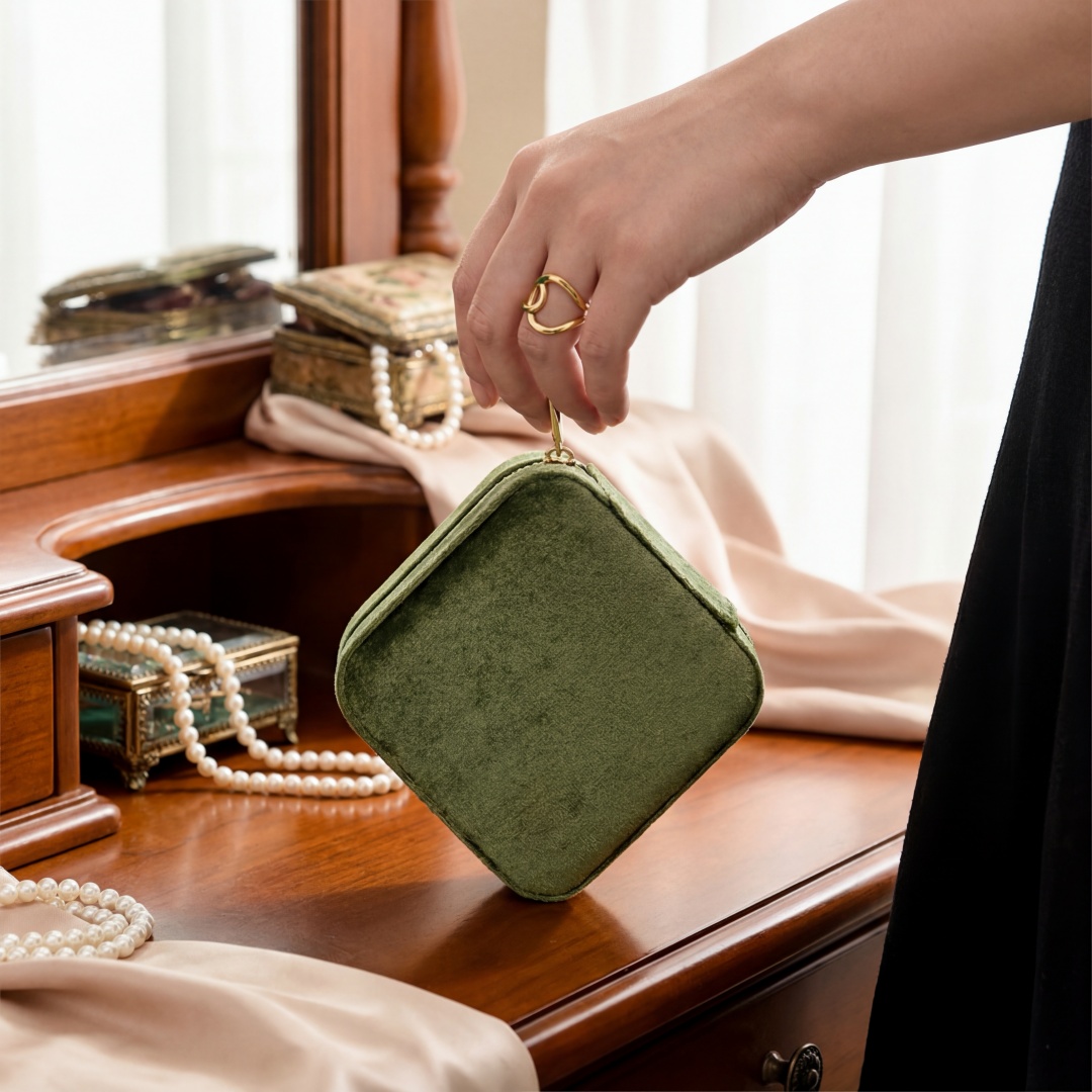 【Luxury and Minimalist Decoration】Dark green velvet + Gold zipper, combining storage and decoration functions